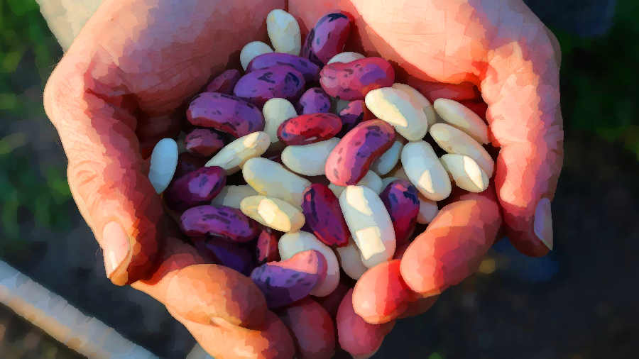 “But wait till you see the beans,” said the old man. Then he took handful of beans out from his pocket. When Jack saw the beans his eyes sparkled, because they were such beans as he had never seen before. They were of all colors, red and green and blue and purple and yellow. And they were shiny, as if polished.