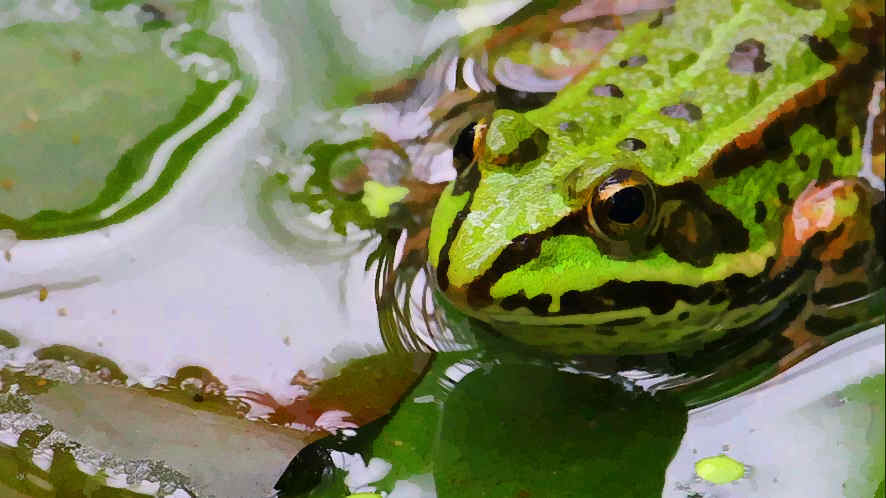 Very unwillingly the child went back to the door and opened it. The frog hopped into the room. When she returned to the table, the frog followed her, hopping along next to her heels.